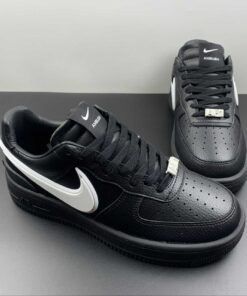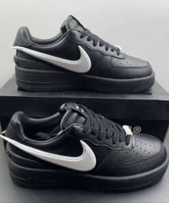 This AMBUSH x Nike Air Force 1 Low Black comes constructed in Black leather build detailed with a White oversized Swoosh similar to the AMBUSH Dunks. Other details includes AMBUSH branded tongue tags, heel counters, and outsoles, with 3D lace dubraes reading “AF-1” to complete the design. Black laces and sole are also in play. The shoes will be housed in co-branded packaging.