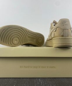 Both iterations in this capsule adhere to tonal and patchwork motifs. The Happier Than Ever artist reimagines Bruce Kilgore’s famed design by discarding the usual leather constructions and tossing on broken-up canvas panels across the side panels, toe boxes and rear ends. Her signature Blohsh insignia fittingly makes its way onto the tongues and lace dubraes while her moniker and a Nike check arrive printed on the foam insoles. Furthermore, the shoes are housed inside a specially-designed shoe box that is dyed with creamy exteriors, co-branding and one of her mottos “It’s hard to stop once it starts.”