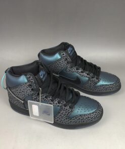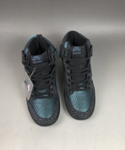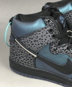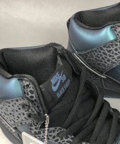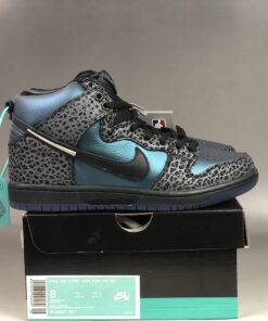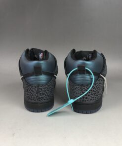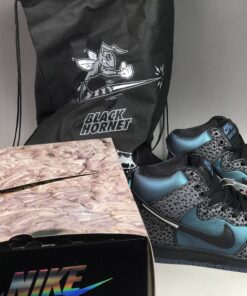 Dubbed, “Black Hornet”, the shoe features an iridescent Teal and Purple upper with elephant print detailing on the panels, and a Silver embroidered Hornet “Stinger” Swoosh detail. A Black midsole and icy translucent outsole completes the design.