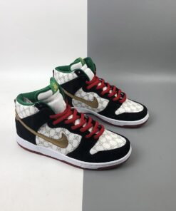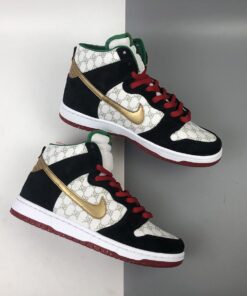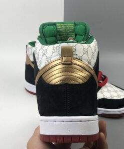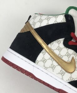 The Black Sheep x Nike SB Dunk High that’s been sneaking onto the newswire via some previews over the past couple of months looks to more specifically be a reference to Rakim and Eric B’s masterpiece Paid in Full. The Gucci-style SB logos are actually a reference to the Dapper Dan jackets that the two wore on the cover of that classic album, with the green and gold accents further linking things up with the cover in question. That old-school flavor will be extra present in the deluxe edition launching at Black Sheep on 6/14, which features dookie rope lace dubraes and the boombox packaging.
