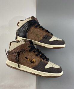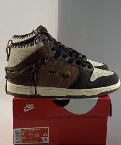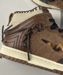 Starting out with its upper constructions, the majority of its base alternates between tumbled leathers and hairy suedes, the former of which affixes to the toe boxes, ankle flaps and throat overlays while the latter costumes the quarter paneling and toe tips. This entire piece is predominantly hued in “Fauna Brown” but comes coupled with additional shades of “Rustic” and “Velvet Brown” accents. From there, a smorgasbord of interesting ornamentations are brought to the table here including the tortoise shell jeweled Swooshes, debossed “Bodega” branding on the medial quarter, and the exposed leather stitchings that poke out across the liners, loop through side walls and appear tied up on the heels. Being that Bodega was founded in the city of Boston — a city famously known for its fiery passion for the Red Sox — the exposed stitches are employed to resemble a baseball glove.