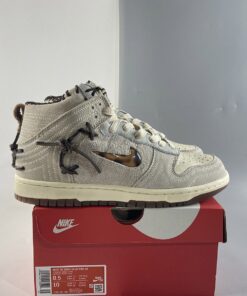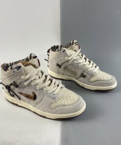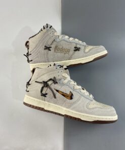 The first Nike Dunk High comes dressed in a “Fauna Brown/Rustic-Velvet Brown-Multi-Color” color blocking, while the other Dunk High sports a “Sail/Birch-Rustic-Multi-Color” makeup. Both feature jewel Swooshes on the lateral, “Bodega” branding is stamped on the medial along with thick exposed baseball-like stitching throughout the upper, sides, sock liner, and heel.