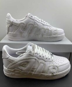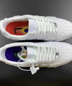This Cactus Plant Flea Market x Nike Air Force 1 Low Triple White dons a white leather construction all over the upper with the Air Uptempo-inspired “SUNSHINE” lettering overlays wrapping around the side panels which are also 3M. Tonal Swooshes underneath the lettering, Nike branding on the tongues and heels, and colorful thermal insoles wrap things up.