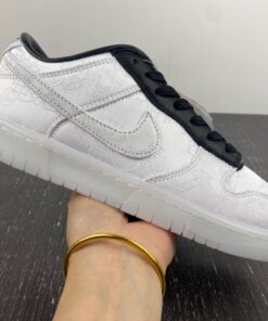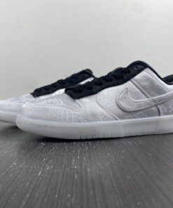 The collaborative Dunk Low draws directly from CLOT’s previous works, primarily with its Nike Air Force 1 Low and the silky tearaway uppers with another colorway underneath the initial layer.. Matching the high level of expectations is the leather lining, ensuring these feel like a quality collaboration while on feet. Co-branding is printed onto the left insole, with CLOT’s 20th Anniversary logo only centimetres above fragment’s infamous double lightning logo. The collaborative presence is also made clear on the heel, with black embroidery beckoning out the name of the two footwear monoliths. Underneath lies a milky rubber sole, which may possibly be glow-in-the-dark, but only time will tell if that is truly the case