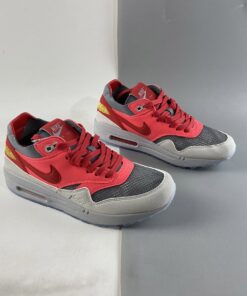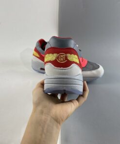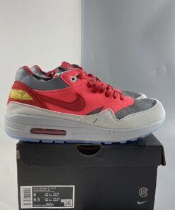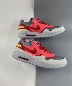 This offering of the CLOT x Nike Air Max 1 comes with a new construction featuring mesh toes replacing the clear toe box as well as suedes in place of premium leathers. Its upper sports a Grey hue with Solar Red used on the overlays, tongue labels, heels, laces, and Air bubbles. White mudguard overlays with a new debossed motif at the lateral forefoot atop a translucent outsole with Chinese fonts completes the design.