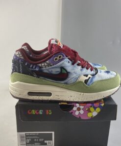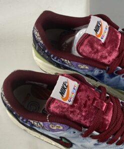 While it bears a relatively close resemblance to the pair seen on Deon Point’s IG, this colorway proffers a few changes that sets itself apart. The cow-patterned faux fur across the vamp, for instance, swaps its palette for a more classic black and white; and the denim along the quarter is tweaked as well, adding an acid treatment atop its lightwash. Farther below, the lightly speckled sole and olive ripstop mudguard are kept intact, something that can be also said for the velvet across the tongue as well as the bandana and tribal prints at the rear.