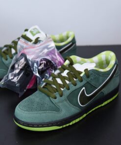This iteration of the Nike SB Dunk Low comes dressed in shades of Green resembling the “Green Lobster” Concepts x Nike Kyrie 4. Other details includes the signature checkerboard inner lining done in Light Green and White. A Black midsole and Green rubber outsole completes the design.