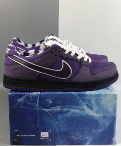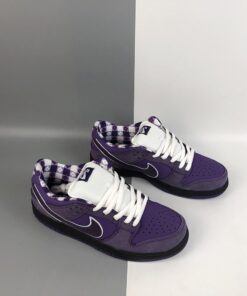 Dressed in a Voltage Purple and Court Purple color scheme. This Nike SB Dunk Low features a Purple-based upper highlighted with a Red checkerboard liner. Other details includes a White padded tongue atop a Black midsole and Purple rubber outsole.