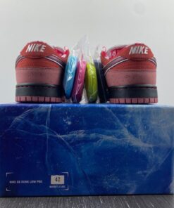 Nike SB partnered up with Rob Heppler and Massachusetts boutique Concepts to design a special Dunk Low revolving around New England’s specialty, lobsters. Lobsters play a large role in the design process and are the nickname of the Dunk that consists of a sport red and pink clay colorway. In addition, the Nike Dunk SB Low Lobster came with a removable lobster claw band and a speckled design on the upper. The lobster references are found throughout the sneaker and are carried to the inside where a lobster bib sock liner and insole is seen.
