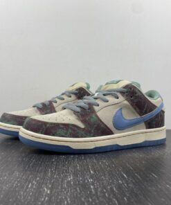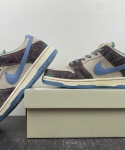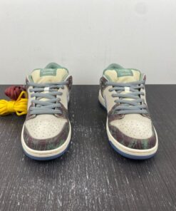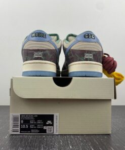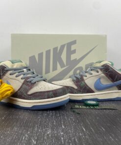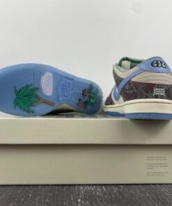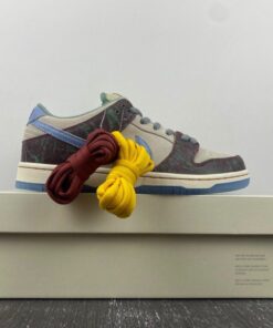 Now for 2023, Crenshaw Skate Club has teamed up with Nike Skateboarding to release their own SB Dunk Low. This offering of the Nike SB Dunk Low comes dressed in a mix of Brown, Blue, and Green hues featuring a cracked leather upper with graphic overlays, co-branded tongue labels, back heel tabs, and insoles. The show will also come with extra set of laces and housed in special packaging.