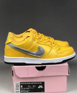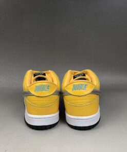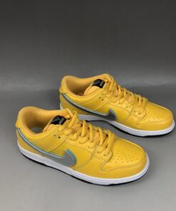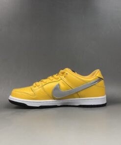 This Nike SB Dunk Low sports a full Yellow leather upper with a removable Metallic Silver Swoosh branding. Its build is the same as the others, featuring a crocodile print on the toe and heel completed with a Diamond tag on the tongue.