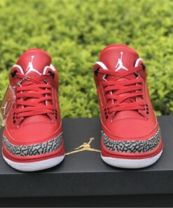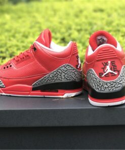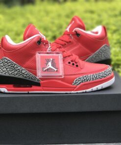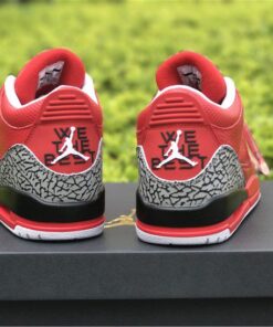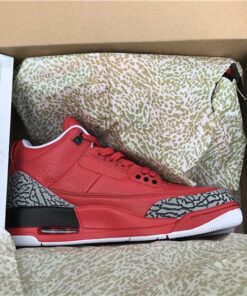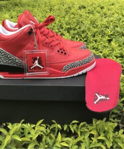 Above you will find our first look at the first collab between DJ Khaled and Jordan Brand. The collab appears to be an entire collection but the main attraction is without a doubt the Red pair of Jordan 3s known as the DJ Khaled x Air Jordan 3 Grateful. The Jordan 3 comes with a Red leather upper paired up with the Elephant print on the heel and toe. The shoe comes with even more Red by way of the laces and midsole. What really sets this shoe apart is the dual Jumpman/We The Best branding posted on the heel. White accents on the tongue’s Jumpman and outsole solidify the look.