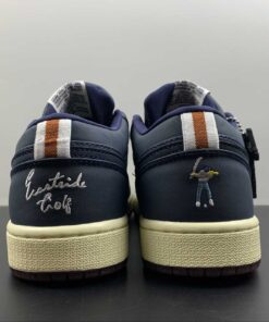 Introducing the Eastside Golf x Air Jordan 1 Low in the Midnight Navy/Burnt Sunrise-White colorway. This collaboration combines the iconic Air Jordan silhouette with Eastside Golf’s unique design aesthetic. The sneaker features a navy and white leather upper with pops of burnt orange on the Swoosh and heel tab. Perfect for both on and off the golf course, these sneakers are a must-have for any sneakerhead or golf enthusiast. Get your hands on a pair today!