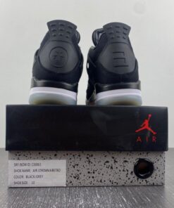 The Eminem x Carhartt x Air Jordan 4 features a predominantly black-based color scheme on the canvas upper that’s coupled with gray accents on the tongue along with metallic silver hits on the eyestay. Eminem’s branding appears on the heel tabs while Carharrt’s signature logo is found behind the tongue. Rounding out the look is a black and white midsole and a translucent outsole.