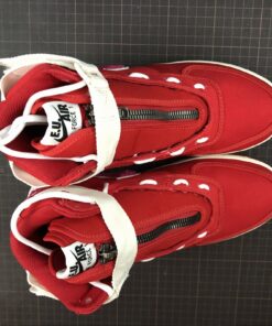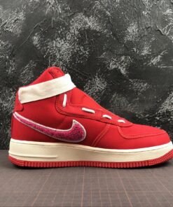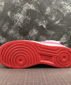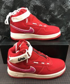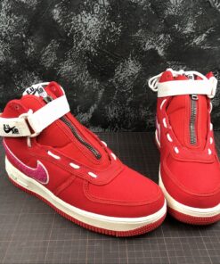 This Nike Air Force 1 High comes dressed in a Red upper with Sail detailing. Additional features includes a zipper enclosure replacing its traditional lacing system, dual branded tongues, ankle strap and Pink felt texture Swoosh logos.