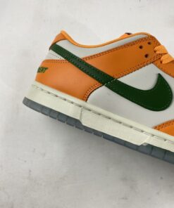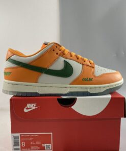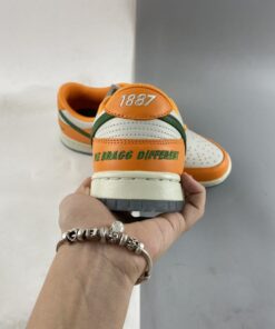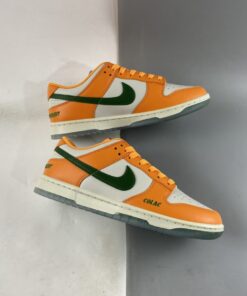 This offering of the Florida A&M x Nike Dunk Low comes dressed in the school’s colors featuring a White leather base with Orange overlays, laces, and lining paired with Green Swooshes. Other notable details includes the school’s rattlesnake, Rattler mascot on the tongues, text behind the tongue tags, and 1887, the year the university was founded, embroidered on the heels. “COLAC” (College of Love and Charity) on the lateral forefoot with text on the heels atop a graphic translucent outsole completes the design.