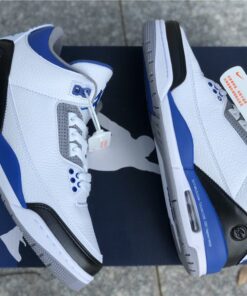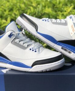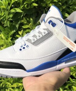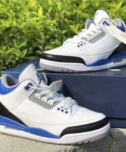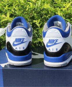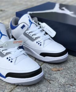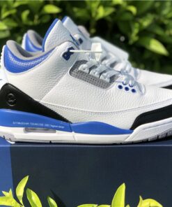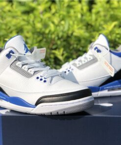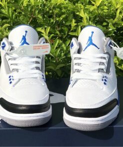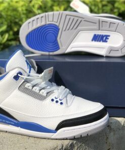 This Fragment x Air Jordan 3 comes dressed in the same color scheme as the popular Air Jordan 1 that released back in 2014. It features a White leather upper with Black leather replacing the traditional elephant print on the toe and heel. Royal Blue accents covers the tongue, ankle collar, midsole and heel tab, while having Fragment’s lightning bolt logo stamped into the lateral heel. Finishing off the design is a script branding above the Air bubble completed with “Nike Air” branding on the heels.
