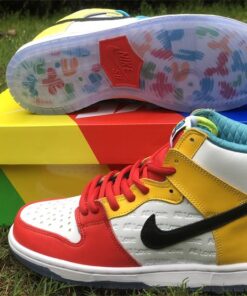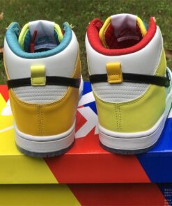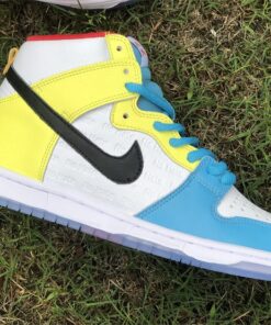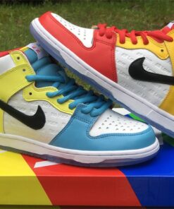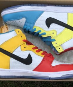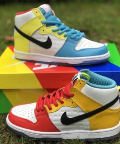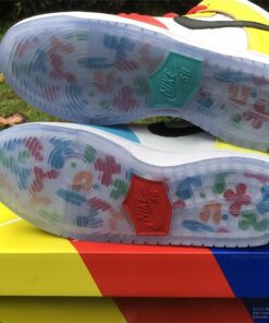 The sneaker features a white leather base with the quarter panels featuring “All Love” debossed on the upper. Pops of mismatched colors are seen on the overlays, with red, teal, yellow, and lime green placed throughout the sneaker. The Swoosh is seen in black with froSkate branding on the left tongue tag and “All Love No Hate” seen on the right. Lastly, a white midsole and translucent outsole finish off the sneaker, with the soles featuring a multicolored design.