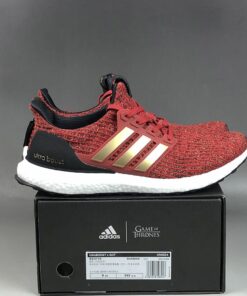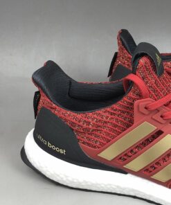 With a full Primeknit upper for all-day comfort, a bold red shade is present from heel to toe for an eye-catching look. Contrasting gold Three Stripe branding adorns the lateral and medial sides for a luxe aesthetic, while additional gold tones make their way to the tongue and heel cup, emphasising the shoe’s regal aesthetic. To complete the design, a full length Boost midsole sits down below for extra comfort and endless cushioning, and to round it all off, a “Hear Me Roar” tag is present around the back.