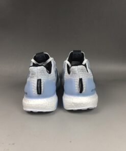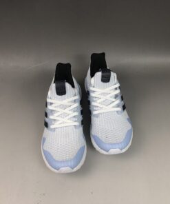 Dressed in a wintry-like color scheme. This adidas Ultra Boost features a White Primeknit upper with speckled detailing, along with Blue contrasting accents. A White Boost midsole with Black detailing and rubber outsole completes the design.