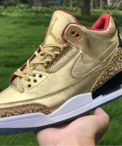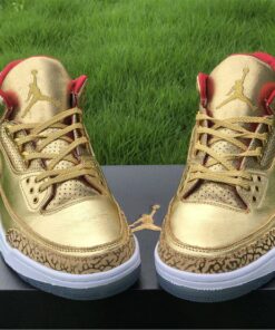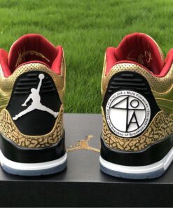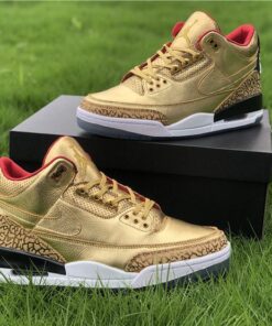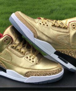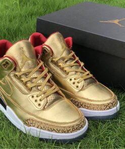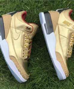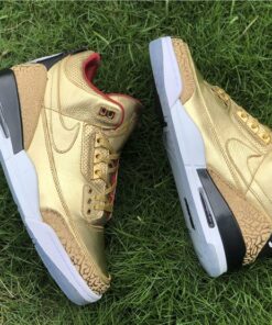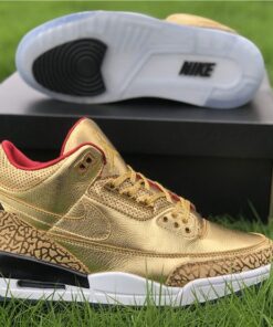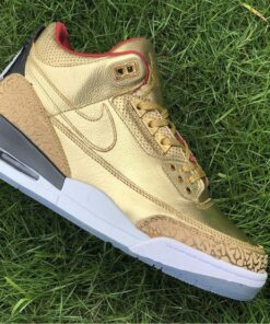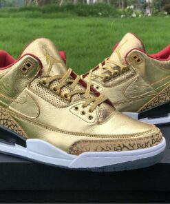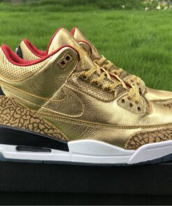 This Air Jordan 3 comes decked out in all-Gold to mimic the Oscars trophy, while having Red trimming atop a White midsole and icy outsole. But the highlight of the shoe is seen on the heels, with the left displaying a large White Jumpman and the other showcasing Spike Lee’s production company logo.