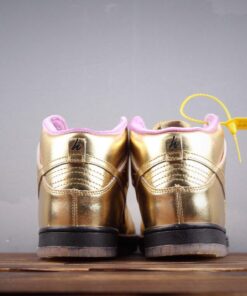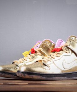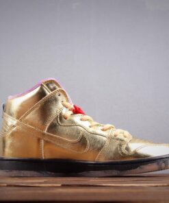Drawing inspiration from iconic cues of the Big Easy, this Nike SB Dunk High dubbed “Trumpet” comes dressed in a Metallic Gold upper with a Red bow tie on the tongue as a nod to the most influential jazz musician of all-time: New Orleans—born trumpeter Louis Armstrong. Finishing off the theme is a premium velvet lining nods to the inside of musical carrying cases and musical notes printed on the translucent outsole.