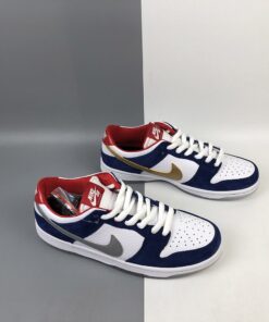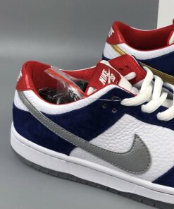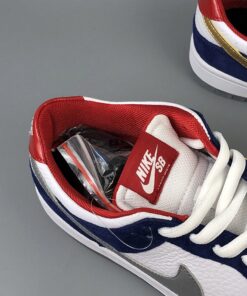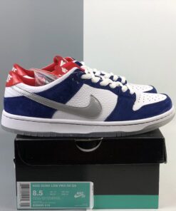 The sneaker features a mix of Deep Royal Blue, Metallic Silver, University Red and Metallic Silver done in nubuck and textured leather.