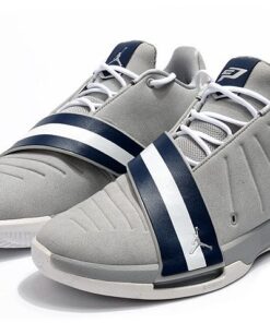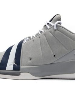 As you can see this Jordan CP3.XI comes dressed in a Light Smoke Grey and Metallic Silver color theme. Utilizing Grey on the upper while Navy and White lands on the strip which is a tribute to the Cowboys uniform. Finishing the look we have turf graphic on the insole while White covers the rubber outsole.