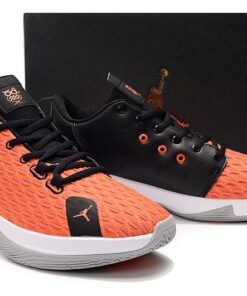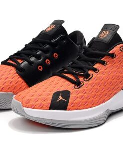 This rendition of the basketball shoe features a Multi-Color knitted fabric upper with Black leather overlay on the medial sides. A small tongue embellishment with Jumpman branding on the insole and heels completes the design.