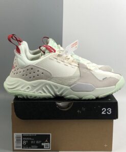 This latest offering comes dressed in a Sail, Jade Aura, and Spruce Aura color scheme. The shoe features a lightweight material on the upper with transparent, flexible TPU overlays paired with Red contrasting accents throughout. A React foam sole completes the design.