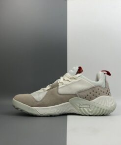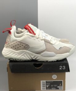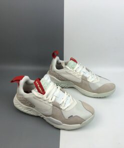 This Jordan Delta SP comes dressed in a Sail, Varsity Red and White color combination. Constructed with mesh across the base wile suede is applied to the overlays. In addition we have a padded tongue while Red detailing is placed on the pull tabs, Wings logo on the heel and insoles. Other details includes a React cushioned midsole and a Green rubber outsole.