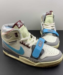 The Jordan Legacy 312 Exploration Unit comes in a similar color blocking as the Air Jordan 1 Mid Exploration Unit. When it comes to the construction, the sneaker utilizes a mix of mesh, leather, and nubuck materials. Standout details include the signature elephant print on the side panel overlays and the bold Blue hits on the TPU Swooshes and strap. A Sail midsole and Gum rubber outsole round out the main features of the sneaker.