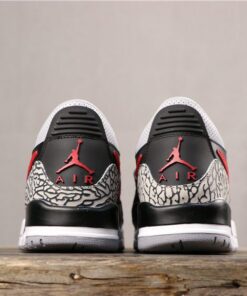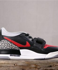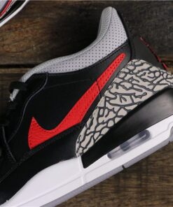 Known as the Jordan Legacy 312 Low, this pair features a mixture of the ‘Bred’ Air Jordan 1 and ‘Black Cement’ Air Jordan 3. Highlighted with Black leather on the upper while Red lands on the toe area and Nike Swoosh. Following we have elephant print on the back heel while Grey wraps the perforated ankle collar. Completing the look is the Air Jordan 3 outsole.