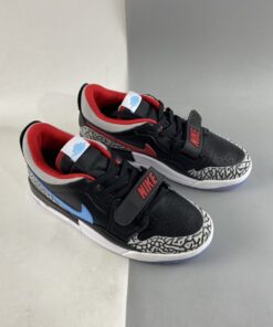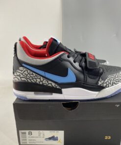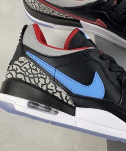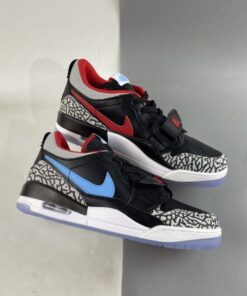 This offering of the low-top Jordan Legacy 312 comes constructed in a mix of leather and mesh with signature nylon tongues. It features a Black base Blue and Red contrasting accents to give off that Chicago Flag vibe. A White midsole atop an icy translucent outsole completes the design.