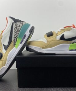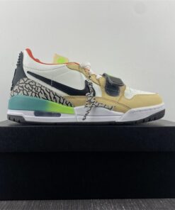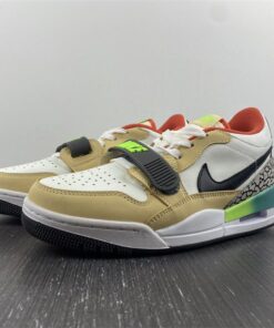 The timing is indeed random, but with the Air Trainer 1 enjoying its own resurgence, the Legacy 312 Low has some space to fit in as it utilizes the same fore-foot strap seen in that 35-year-old classic. This latest colorway pairs opposite sides of the spectrum, leaning on a lifestyle-friendly tan leather overlay and attaching it to a multi-colored array highlighted by a bold gradient pattern at the midsole, neon green on the logo accents, and a vivid orange interior.