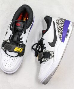With the Los Angeles Lakers loading up on talent, it seems as though colorways that represent the team are becoming increasingly popular. Having said that, it’s no surprise that the purple and gold is coming to this silhouette. The vast majority of the shoe is constructed with white leather while purple and elephant print find their way near the back heel. Finally, Nike is written in yellow on the toe strap which helps put the finishing touches on the Lakers aesthetic.