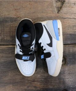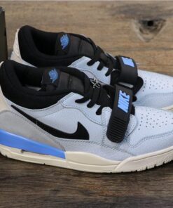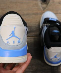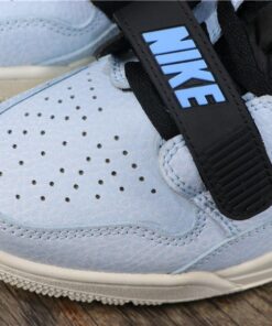 This release sports a Pale Blue leather upper with Carolina Blue accents on the midfoot strap, tongues, Jumpman heel logo and midsole. Other details includes Black Swoosh logos, matching tongues, laces, strap, and inner lining atop a clean White rubber sole.