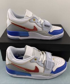 Though predominantly dressed in neutrals, the pair does incorporate a number of brighter elements. The Swoosh, for example, features a subtle red gradient, complementing the dark-to-light finish employed across the blue toe cap and matching lower heel. And save for the animal-like print of the side trim, much of the rest of the construction is solid-colored, alternating between a light blue, white, and grey.