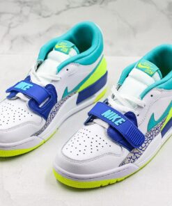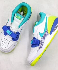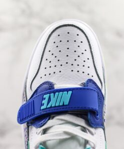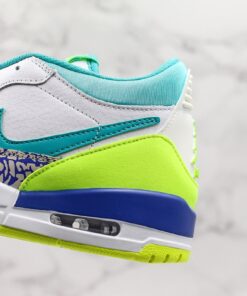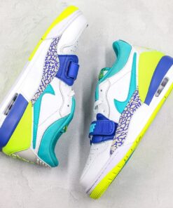 Don C’s Jordan Legacy 312 Low is rendered in a bright tropical colorway, with hits of teal, purple, and volt livening up a white leather upper. The sneaker also features elephant print detailing, as well as side Swoosh branding, “NIKE” on the strap, and “JUST DON” on the tongue. A co-branded patch is also stitched to the insole.
