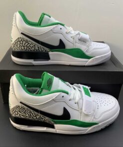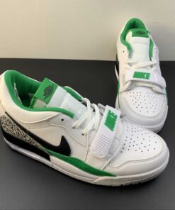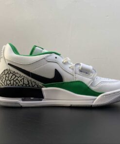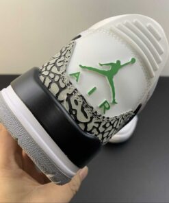 Infusing elements from three iconic silhouettes worn throughout the early years of MJ’s career – the AJ 1, AJ3 and the rare appearance of the Nike Alpha Force Low – the latest low-top effort reserves its staple elephant print exclusively for the heel counter in contrast to past efforts that saw the latter stretch to the forefoot wings. Elsewhere the pair embarks on a lightened take on the iconic color blocking, exercising crisp white leather uppers contrasted in seldom along the jet-black Swoosh and heel mudguard. Mirroring its recent “Lucky Green” Air Jordan 2 with its inclusion of a greyscale tread, vibrant green accents consume the sock liner, tongue trim, mid-foot overlay and branding atop the forefoot strap and Jumpman affixed to the heel for an illuminated finish.