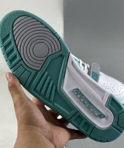 the Don C-assisted hybrid has emerged in a “White/Turquoise” ensemble perfect for any barbecue or other gatherings that tend to happen once the weather gets nice. Synthetic leather makes up the majority of the pair’s upper, and is clad in a “colorless” tone that allows for the aforementioned, aqua-reminiscent hue to revel in the spotlight. Lockdown straps running across the vamp and the Air Jordan 3-associated elephant print on both sides of the heel introduce grey contrast into the mix, while nearby branding and other components opt for the shoes’ titular tone. Underfoot, the story continues, as the majority of the outsole indulges in “turquoise” flair, but features grey and “White” sections, too.