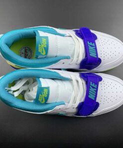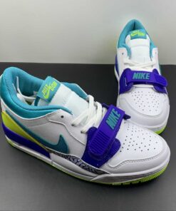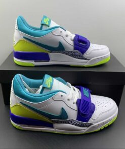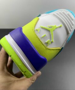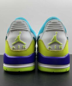 Somewhat neutral elephant prints surprisingly serve as one of the more subdued components, fitting along the profile of a kit retro in all senses of the word. Blindingly bright aqua tones find place across the lining, tongue tab, as well as the textural suede swoosh while volt green ornaments the heel wrap and outsoles entirely. Deep, saturated blues are add a small break to the extremely exposed pieces from the rear-face of the midsole as well as the overarching strap. Branding notes are true to form, with “Just Don” standing next to boldfaced font hits and the iconic Jumpman, though the insoles feature a small circular patch akin to vintage bottle caps or possibly sportswear-centric iconography