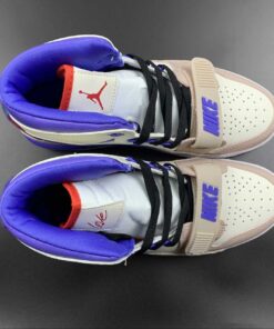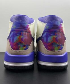 Following the floral motif is the Jordan Legacy 312, which itself features the lush pattern on the heel clip of the silhouette. Unlike the Air Jordan 1 Mid, this option is far more restrained with the pattern and instead relies more on a color-blocking of tan, ultramarine blue, and a light crimson. Even the outsole is a solid rubber, while the aforementioned Air Jordan 1s use a translucent icy sole.
