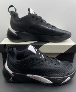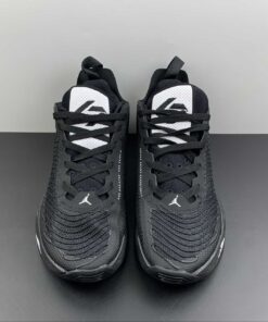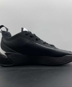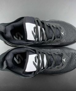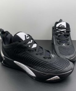 Black is the dominant color of this Jordan Luka 1. White hits are on the tongue, Jumpman logo on the heel, portions of the midsole, and underneath the outsole. The aforementioned portions of the midsole feature a black speckled print, furthering the “Oreo” design. The outsole is also black-based, with translucent hits underneath.