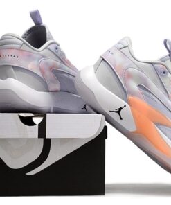The four-time NBA All-Star’s “Nebula” colorway for this silhouette is executed with a mixture of colors to give off the tie-dye effect seen across the upper overlays. The shoe is dipped in vibrant hues of orange, pink and purple, coming together for a unique shade. The shoe is also constructed with a mixture of material, including mesh underlays that receive the faded violet treatment, football grey leather as the base and the IsoPlate on the medial. The forefoot panels are highlighted in sunset orange, while the underfoot is constructed with a white Formula 23 midsole for added comfort. Purple undertones cover the entire shoe to round out the design.