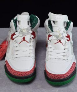 Jordan Brand unveiled the Spiz’ike sneaker – a hybrid mash-up of several Air Jordan models associated with Spike Lee and the memorable “Mars Blackmon” ad campaigns. The first-ever colorway was this mix of white, red, green, and grey inspired by his 40 Acres and a Mule production company that celebrated its 20th Anniversary in 2006. Next Saturday, Jordan Brand will pay homage to Spike with a Retro of this original model, tying it together with the Air Jordan 6 Retro that we showed you earlier today.