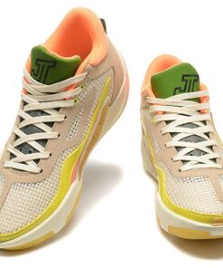 Using a color combo that features shades found on ingredients that make up the dish huevos rancheros, the model comes constructed out of engineered mesh, suede, TPU, and foam. Throughout most of the upper, we see white shades with hits of yellow (representing the sunny-side-up egg) take over the mesh and TPU portions, respectively. Tannish-colored suede appears on the eyestays and heel, while the sockliner and parts of the mesh visible through the sole come in a chili-red hue. Green chilis are represented via the tongue and heel tab, with branding details mostly taking on a black shade. The insole shows a graphic depicting “Gameday Brunch” with the caption “Now serving… Huevos Bancheros,” a spin on the name of the famous Mexican breakfast dish that incorporates the name of up-and-coming NBA star Paolo Banchero. Rounding out the design of this PE is the white foam midsole paired with a tonal white rubber outsole.