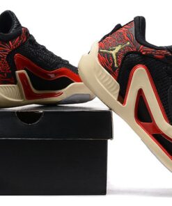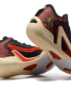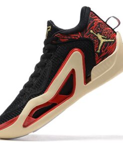 This Pairs in a Black, Metallic Gold, University Gold, and Beach color scheme. the sneaker appears to take some DNA from CP3s signature line with JB and utilizes an engineered mesh upper in all-black that contains intricate graphics similar to that of “Laser” Jordan releases. It comes with different animal patterns covering its upper with the phrase “Welcome to the Zoo” printed on the insoles.Back on the heel, an acid-wash red look takes over with a Jumpman logo in gold breaking up the black/red combo. The shoe features a lightweight, reinforced TPU frame that allows excess material to be stripped away.As for tech within the sneaker, an uncaged Zoom Air unit is present in the forefoot.
