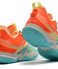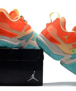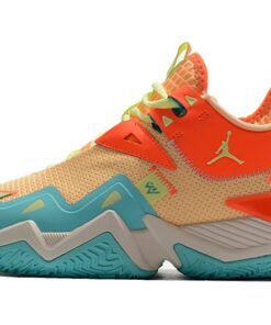This offering of the Jordan Westbrook One Take features a mix of Mango and Orange tones throughout its upper paired with Aqua Blue contrasting accents. Finishing touches includes Barely Volt on the laces, pull tabs, and branded areas.