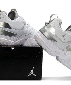 This take on the shoe sports a clean White and Silver makeup, making them perfect for the warmer months. The takedown model comes constructed in a mix of mesh and leather in White with Metallic Silver at the heel and branded areas. A solid White rubber sole completes the design.